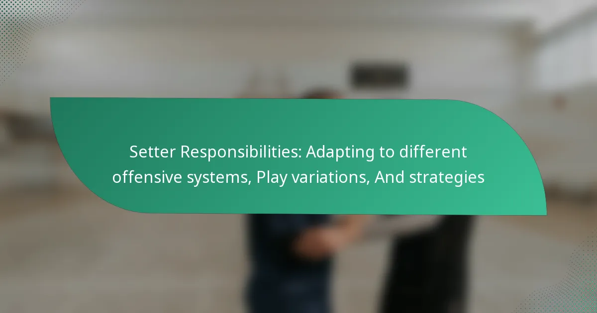 Setters adapt to different offensive systems by understanding the unique characteristics and requirements of each system. This flexibility allows them to optimize team performance and enhance communication among players, ensuring that strategies align with the chosen offensive approach.